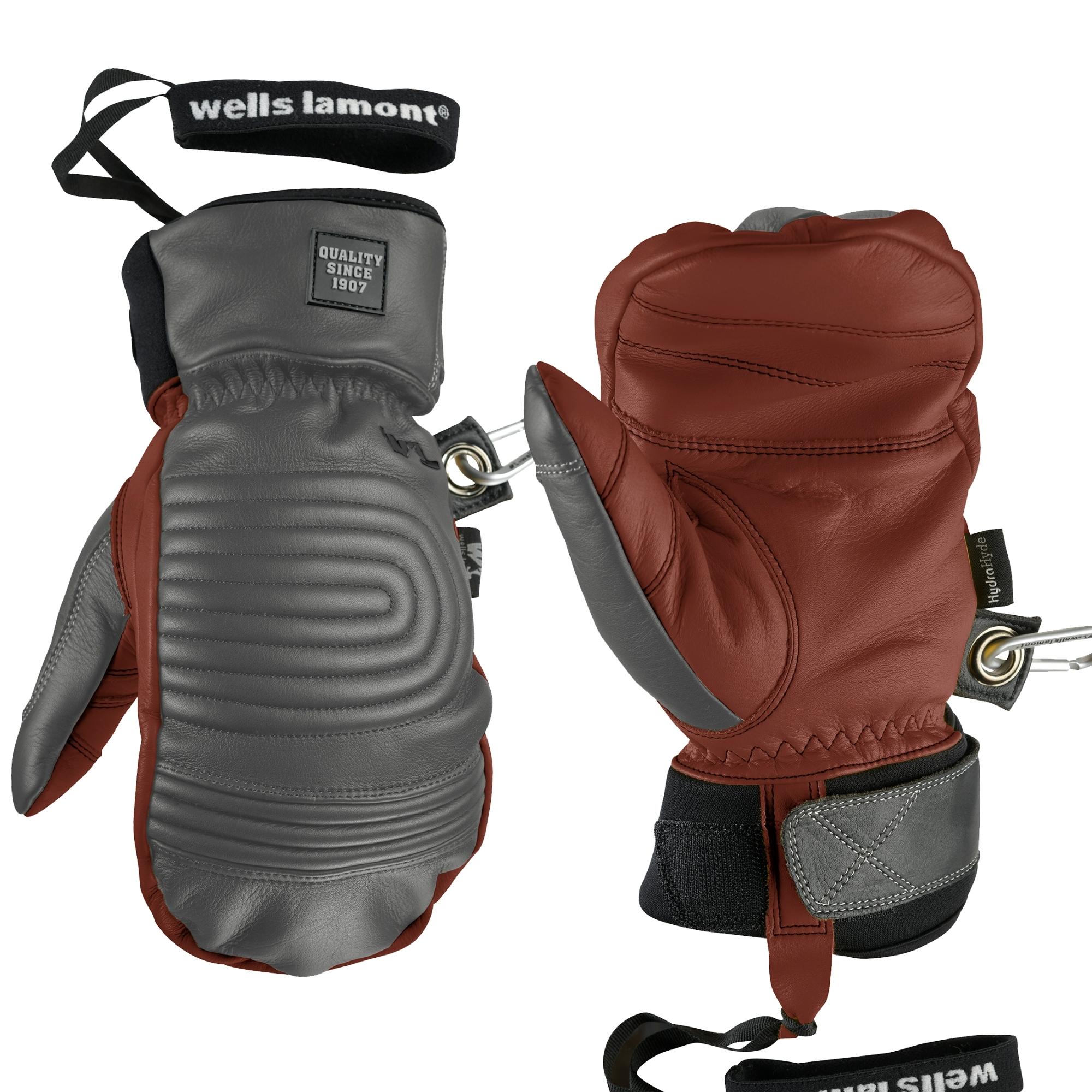 Stay dry and warm with our premium gloves featuring water-resistant HydraHyde® leather and 3M™ Thinsulate™ insulation. SBR foam padding offers added comfort and durability. Includes a waterproof Hipora® insert, removable ski strap leather pull tab, and carabiner for convenience.