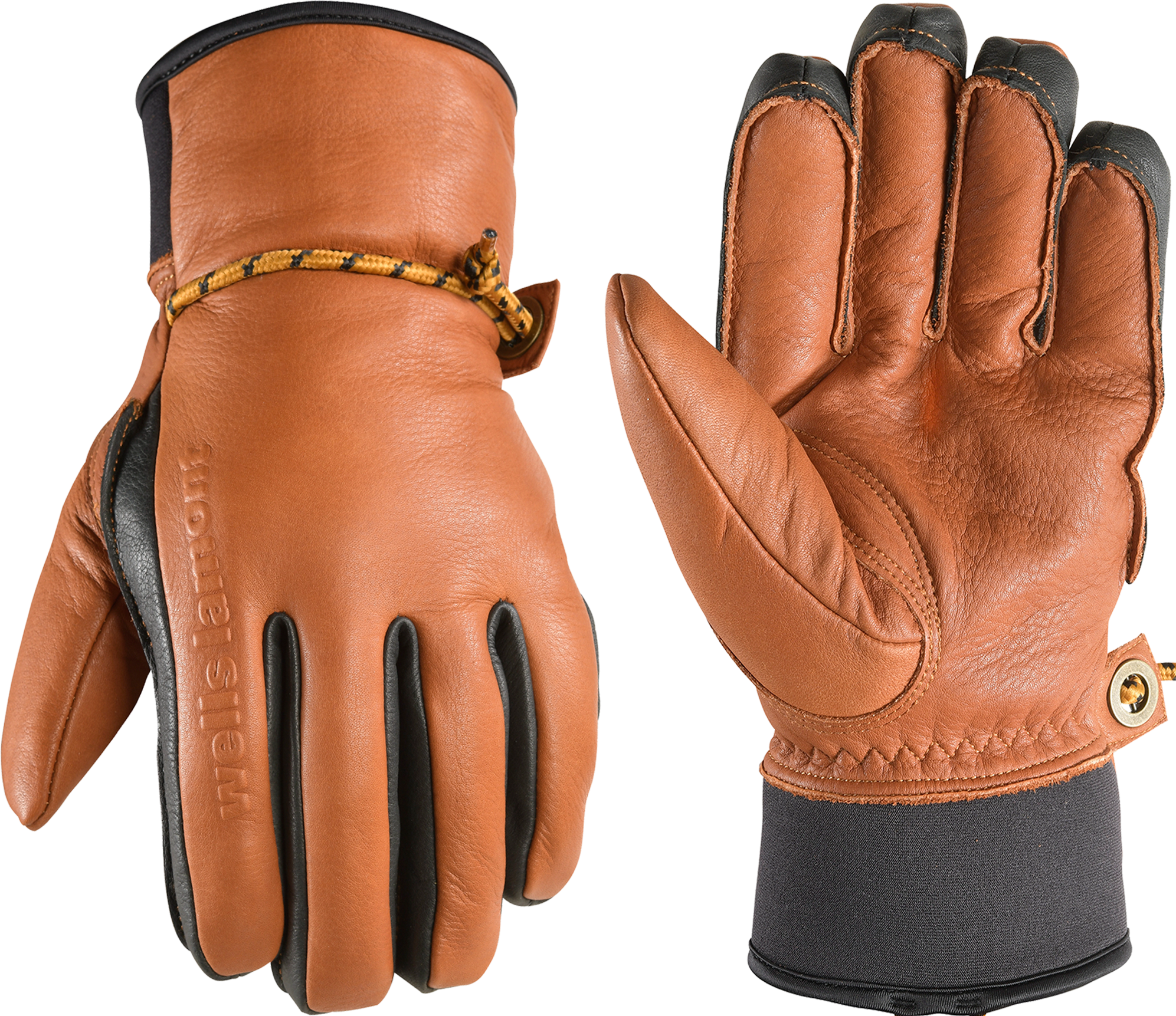 These HydraHyde® leather gloves are water-resistant and Insulated for maximum performance and protection in cold weather. They also feature an adjustable paracord wrist for convenience and to keep out debris.