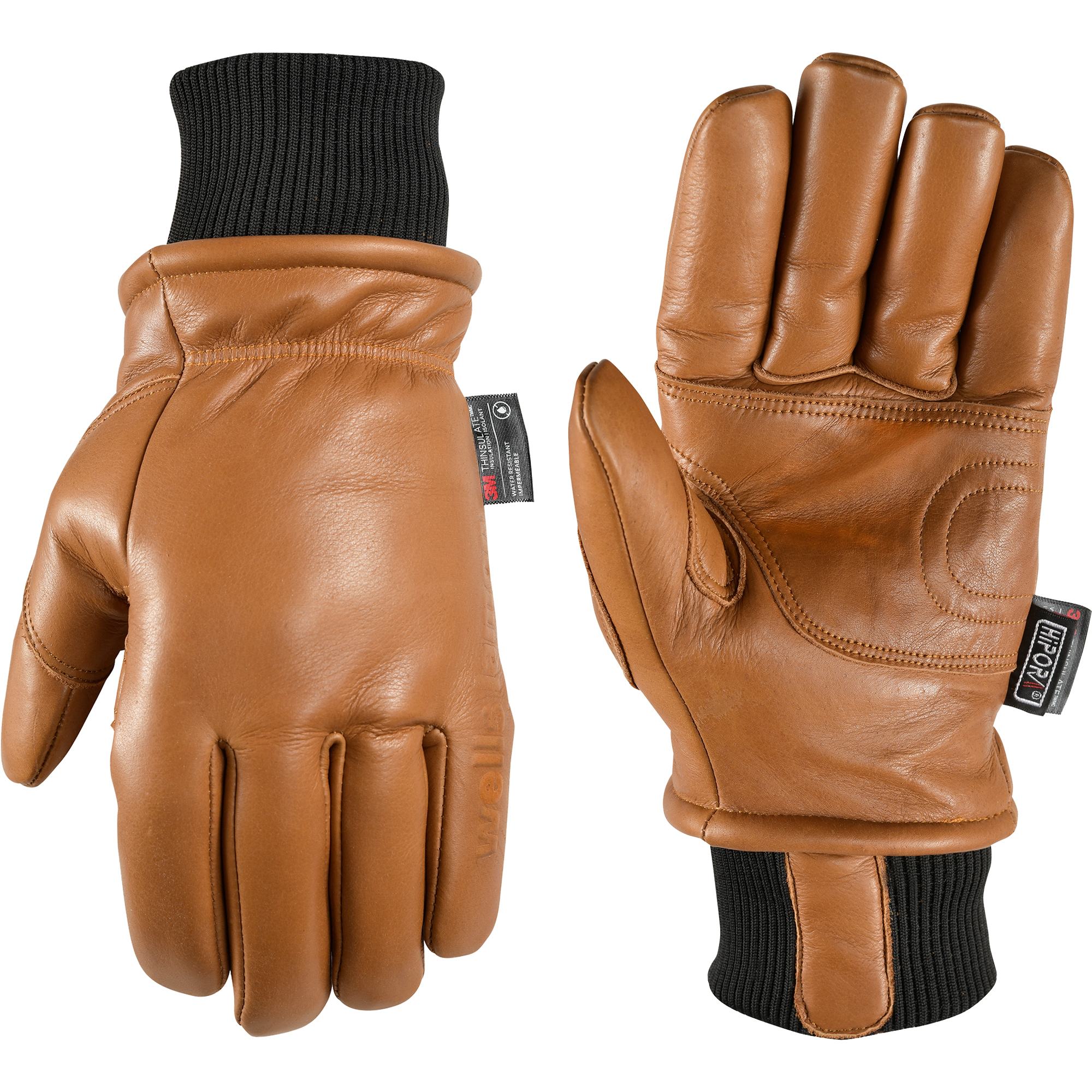 Made from HydraHyde® leather, these gloves feature insulation with a fleece liner, elastic knit cuff, and reinforced palm and thumb for durability and warmth.